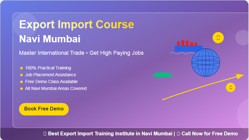 Join the best export import course in Navi Mumbai. Comprehensive training covering Vashi, Nerul, Belapur, Kharghar areas. 100% job placement assistance. Free demo class available. Get certified in international trade.