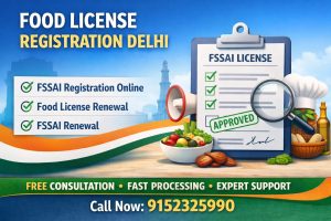 Delhi में Food License Registration, FSSAI Registration Online, Food License Renewal, FSSAI Renewal – Free Consultation. Quick Approval, Expert Guidance, All Delhi Areas Covered. WhatsApp: 9152325990
